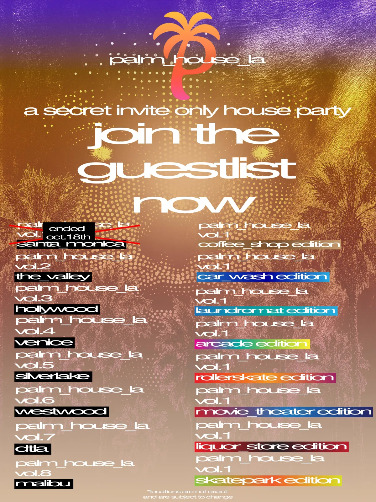 Location revealed closer to show time, invite priority goes to the list.